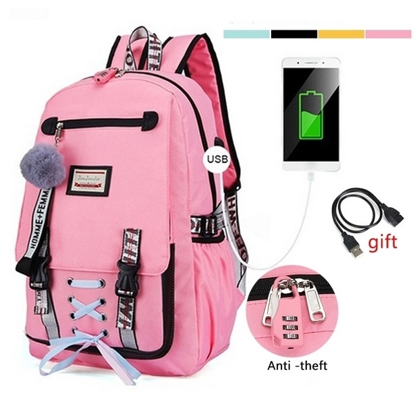 Large School Bags Girls Usb With Lock Anti Theft Backpack Women