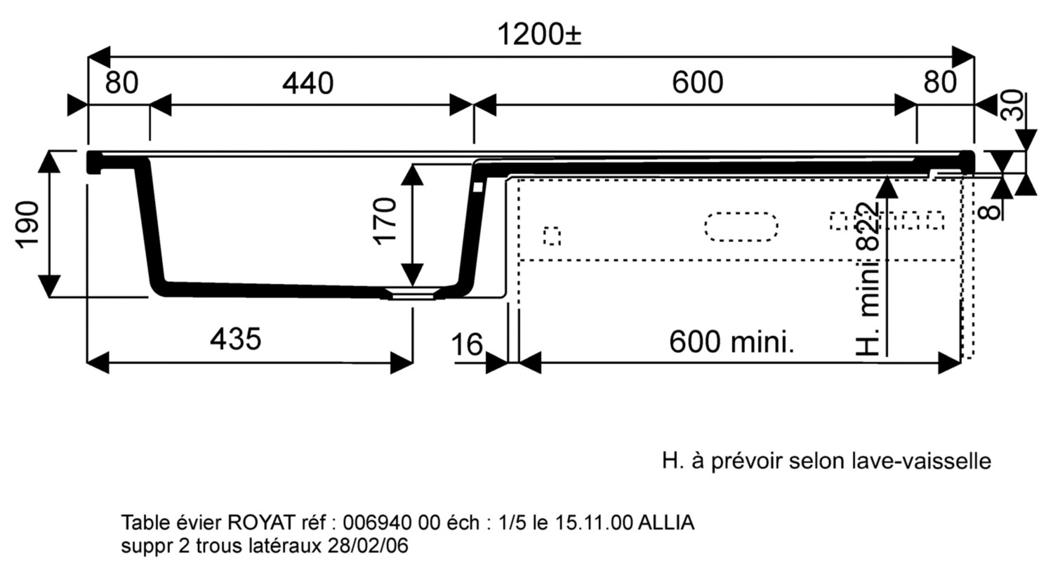Vasque Pour Lave Vaisselle Sans Evier Inox 120 X 60 Blanc Dx